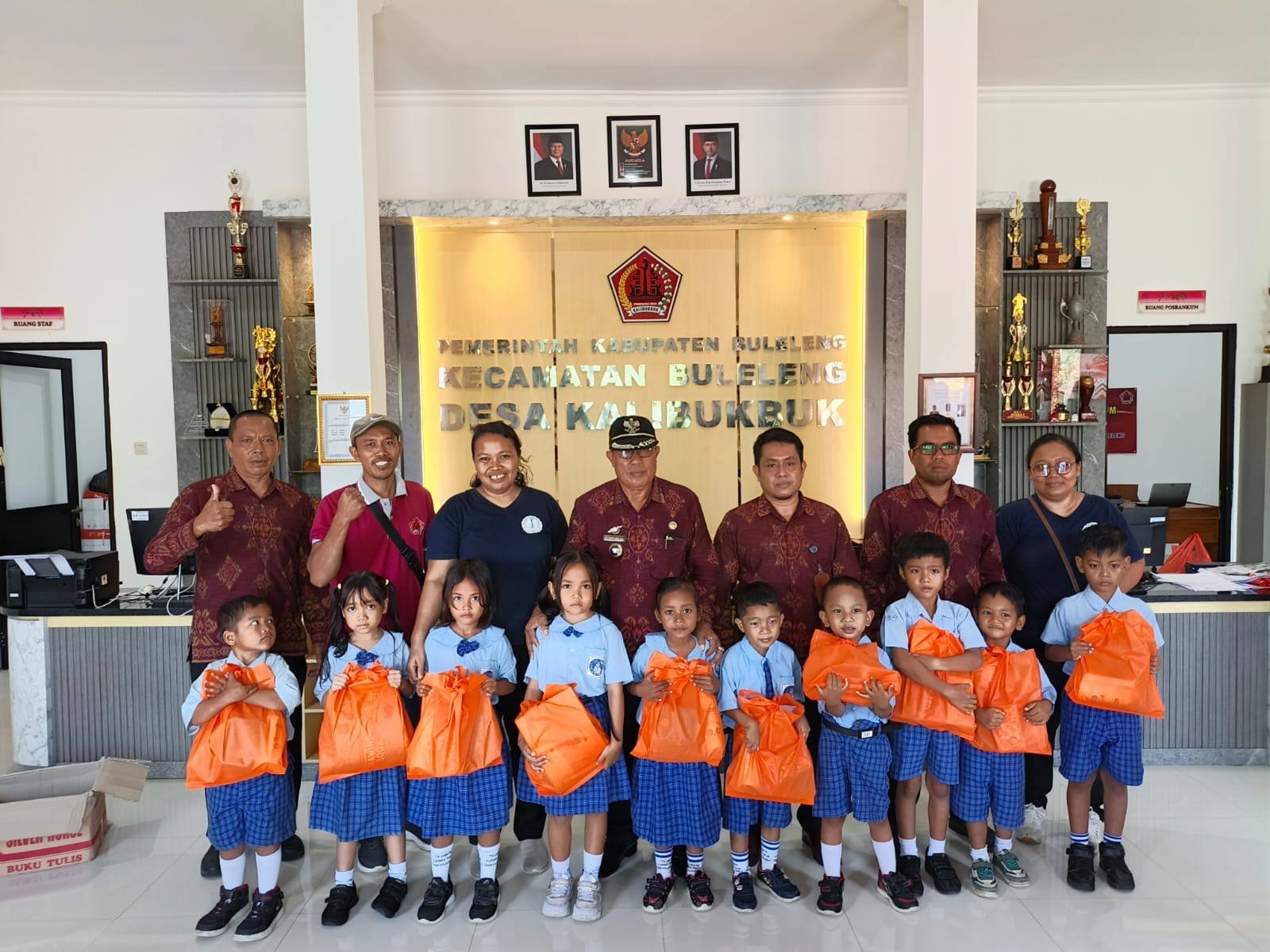 Tidak hanya fokus pada siswa berprestasi, Pemdes Kalibukbuk juga menunjukkan kepedulian sosial dengan menyalurkan bantuan Alat Tulis Kantor (ATK) kepada 10 anak TK kurang mampu yang bersekolah di TK Wisata Kumara Timur, yang merupakan TK Desa Kalibukbuk.